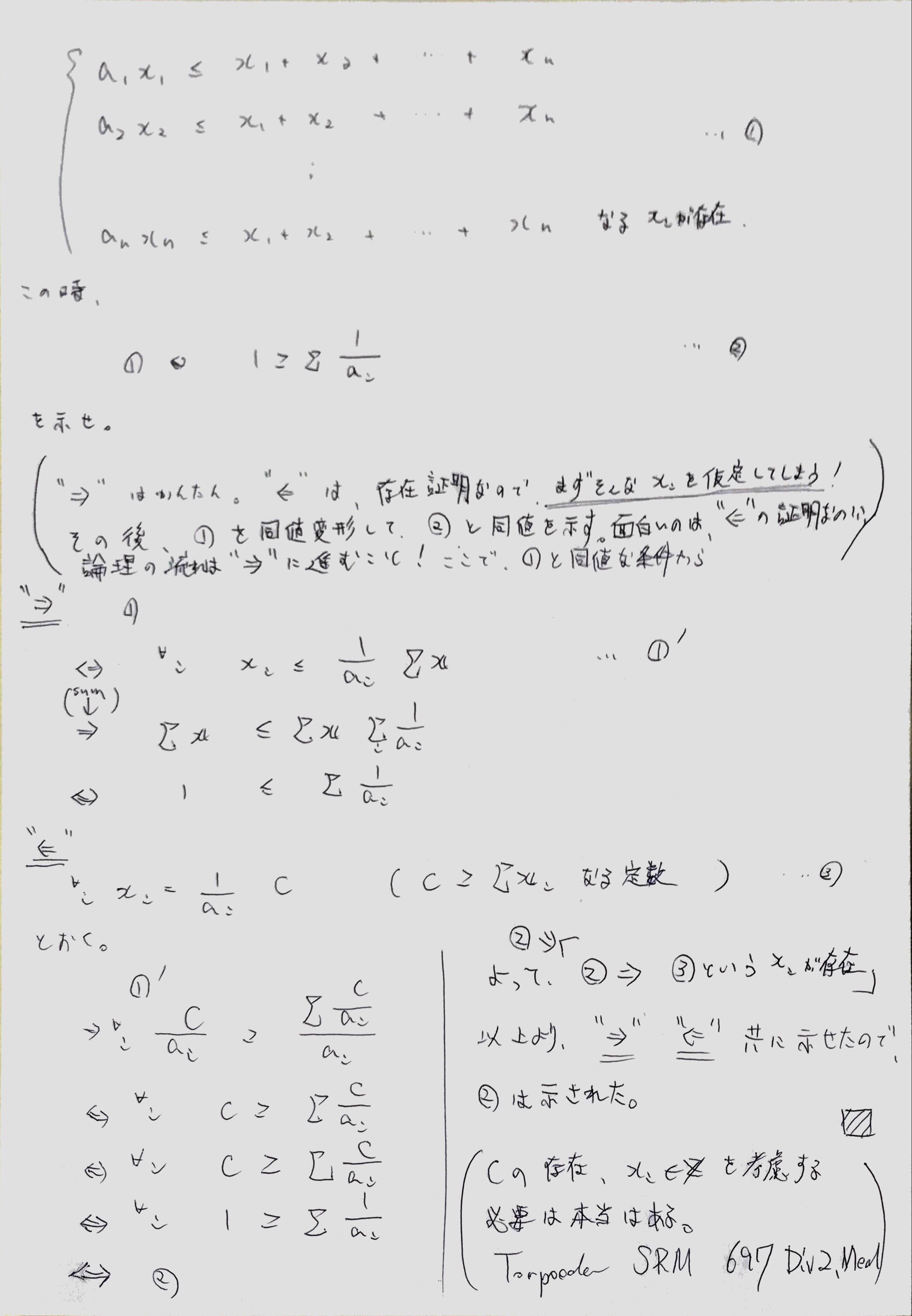 - 競プロにおける線形代数,行列ももちろんだけど行基本変形するやつとか基底求めて最小化するやつとかSRMdiv1medあたりでたまに見る気がする